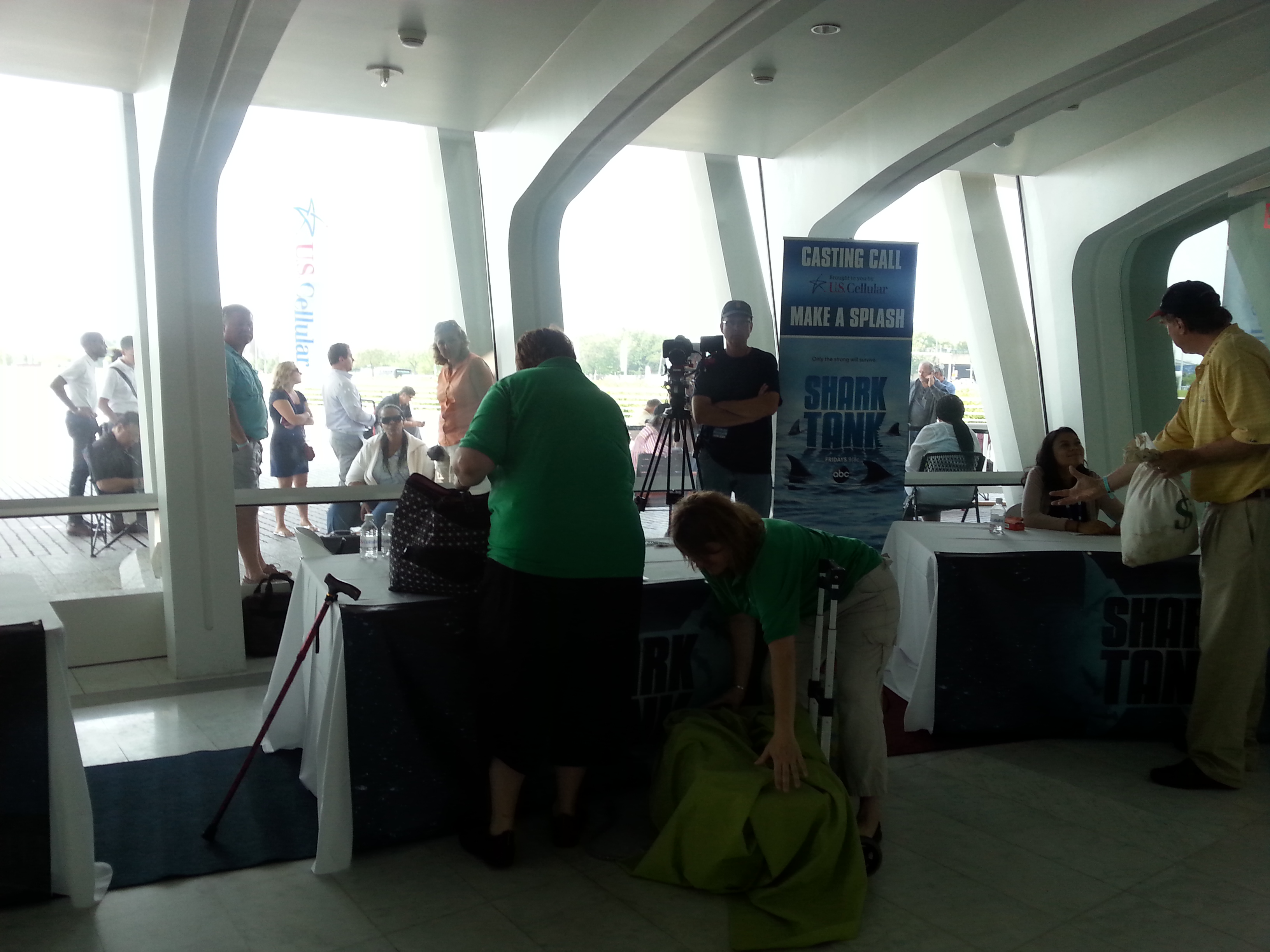 We enjoyed visiting with the other people waiting in line and we definitely made some new friends. In a way, this casting call was like a big networking event. We also had fun watching all the media, Shark Tank staff and US Cellular staff with video cameras interviewing people. We saw fun clothing, a cabinet maker, an awesome type of thermostat, an annual birthday book journal, kitty litter picker-upper, makeup and much, much more.