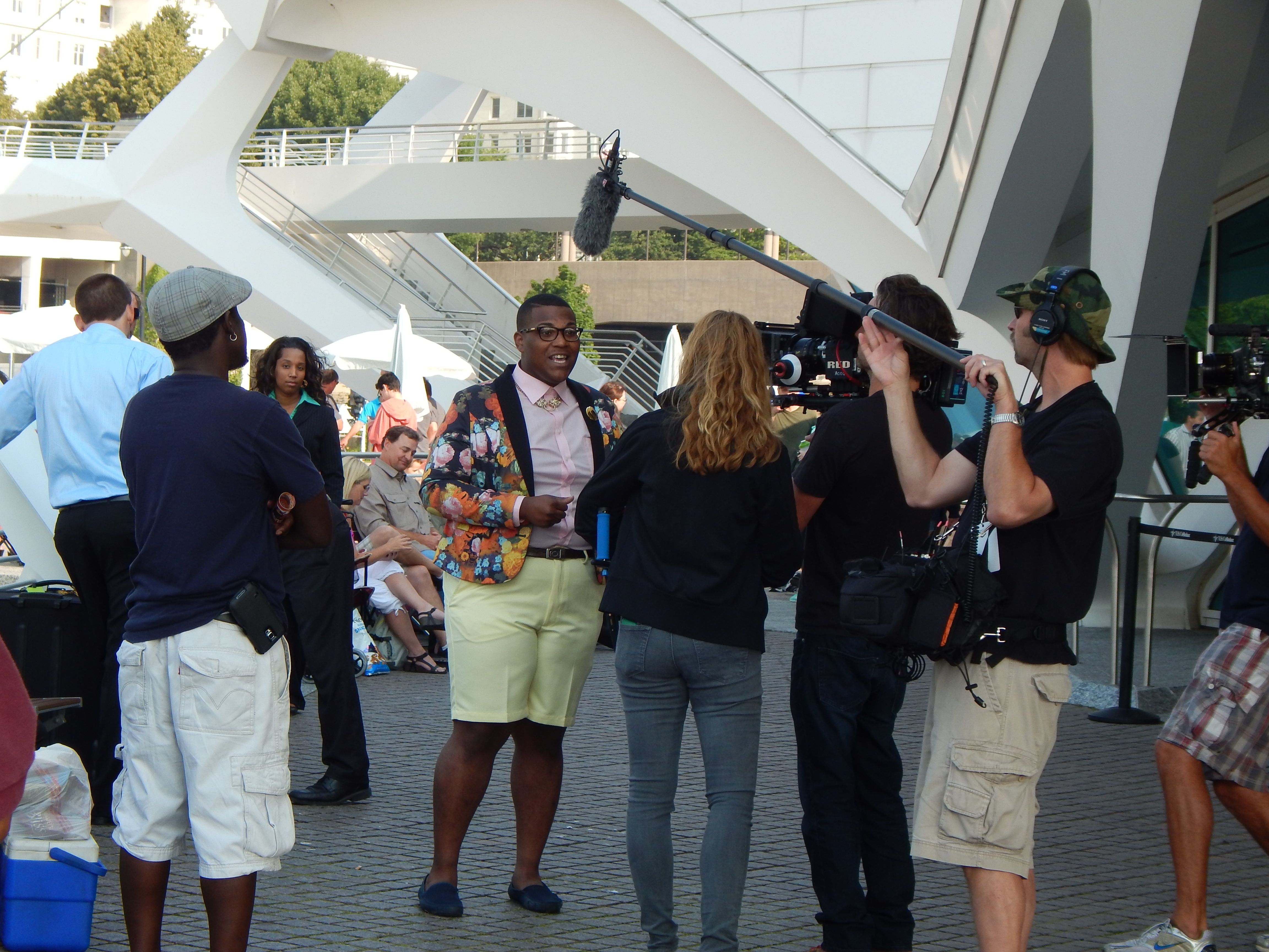 Back out into the gathering area, we were so happy that we hadn’t been devoured and spit back out by the casting crew! Then we met Barclay Pollak, from US Cellular’s sister company, TDS to mingle and interview some of us entrants. We had fun telling him about Pixologie – and he asked us how we knew he had lots of VHS tapes at home. (Because everyone over 20 either has VHS tapes or they have their parents!)